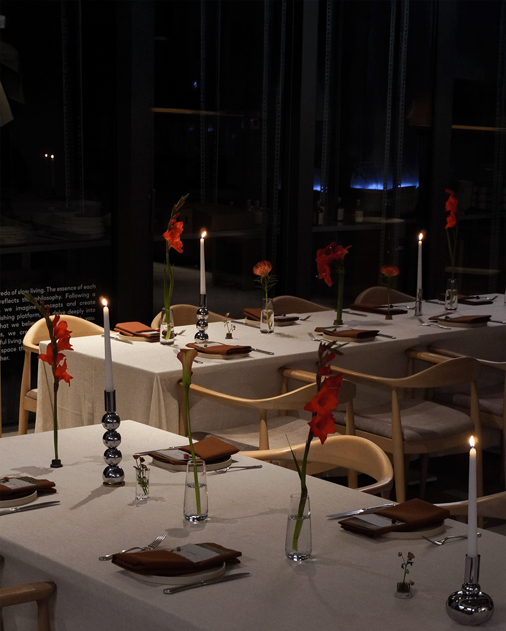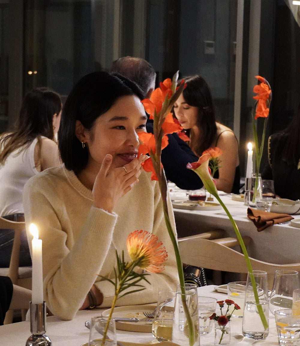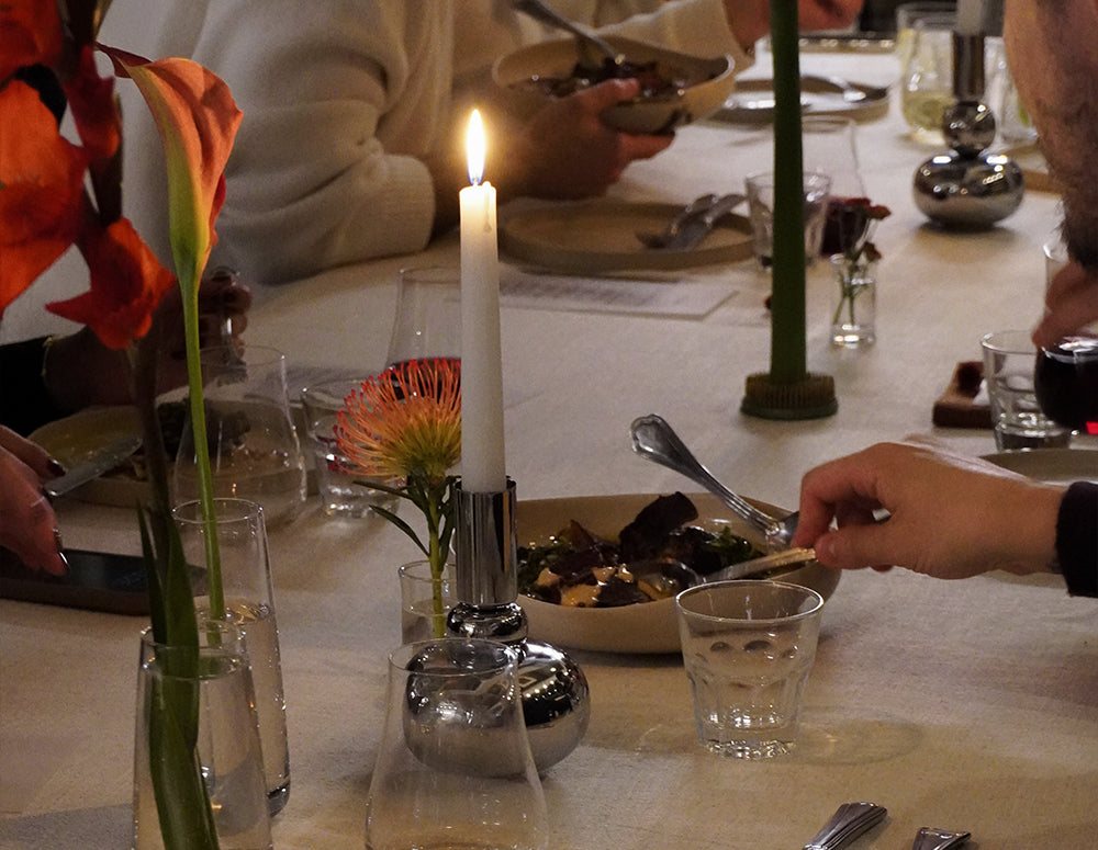 For this event, which we themed as the "Japanese and Brazilian Dinner Experience with a Turkish Twist", we set up a U-shaped table setup in the back lounge of Casa Cooklife. The table, curated by our team member Arzu, was adorned with her ikebana arrangements, our Sand Black collection, and themed postcards designed by our Art Director Burcu.