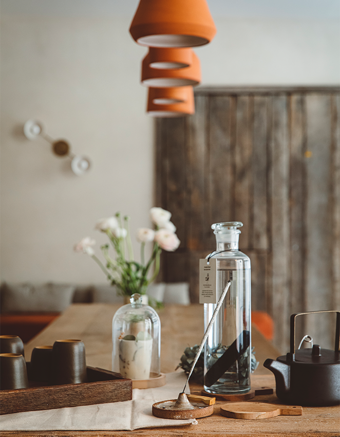 Aynı zamanda otelin birinci katında Japon çiçek sanatçısı Chiaki Kokami’nin başında bulunduğu La Florería isimli bir kuru çiçek dükkanı bulunuyor. Boya ve çeşitli doğal malzemeler kullanarak sürekli yeni teknikler arayan, kurutulmuş çiçeklerin zarafetini klasik Fransız tarzıyla birleştirip, tutkuyla yansıtan sanatçının çalışmaları atmosferdeki sakinliğe uyum sağlıyor. Japon sadeliğinden söz etmişken vücut detoksuna yardımcı olduğu için Japon Binchotan kömürü ile mineralize edilmiş su sürahilerinin odalarda sizi karşıladığını da unutmamak gerek.