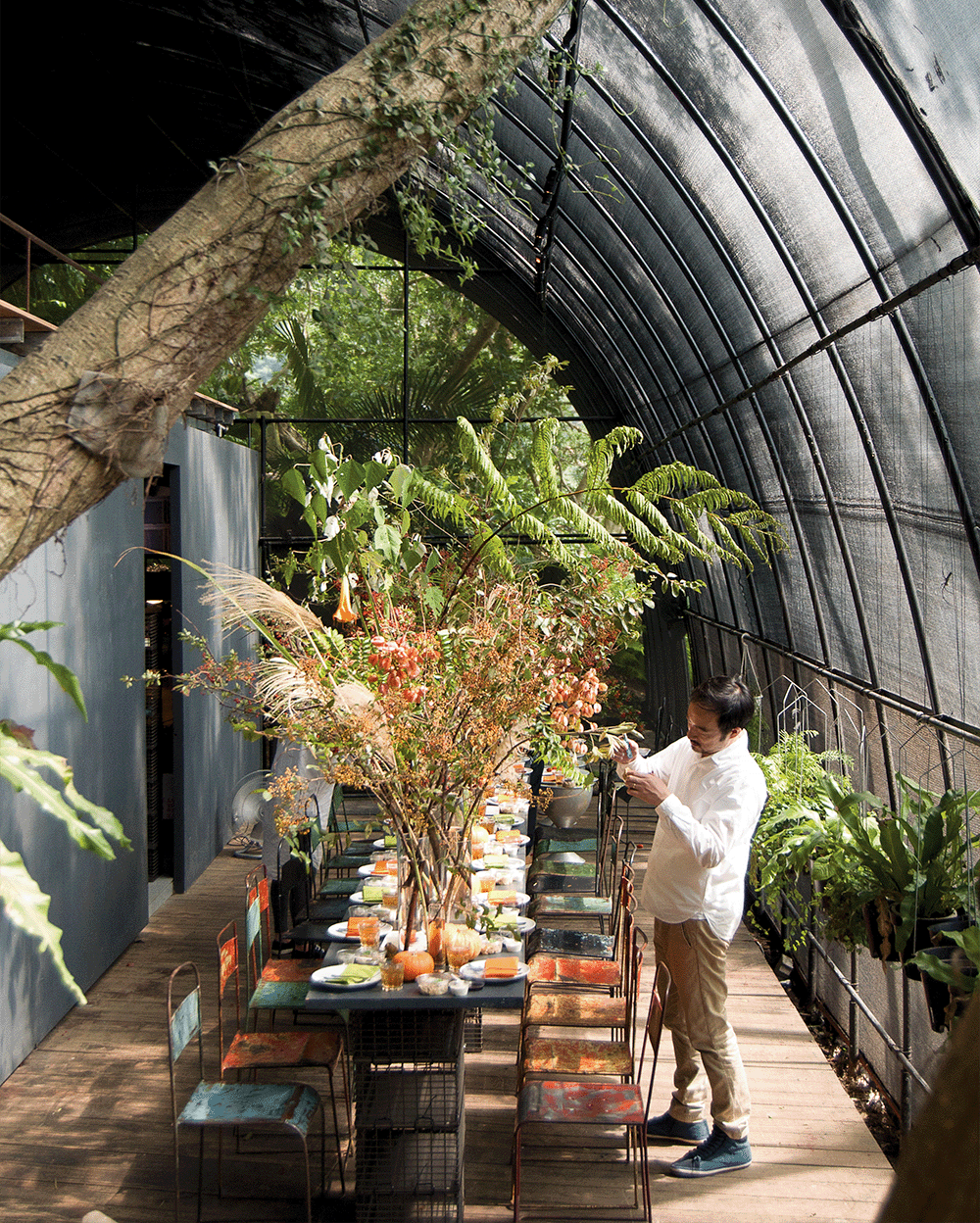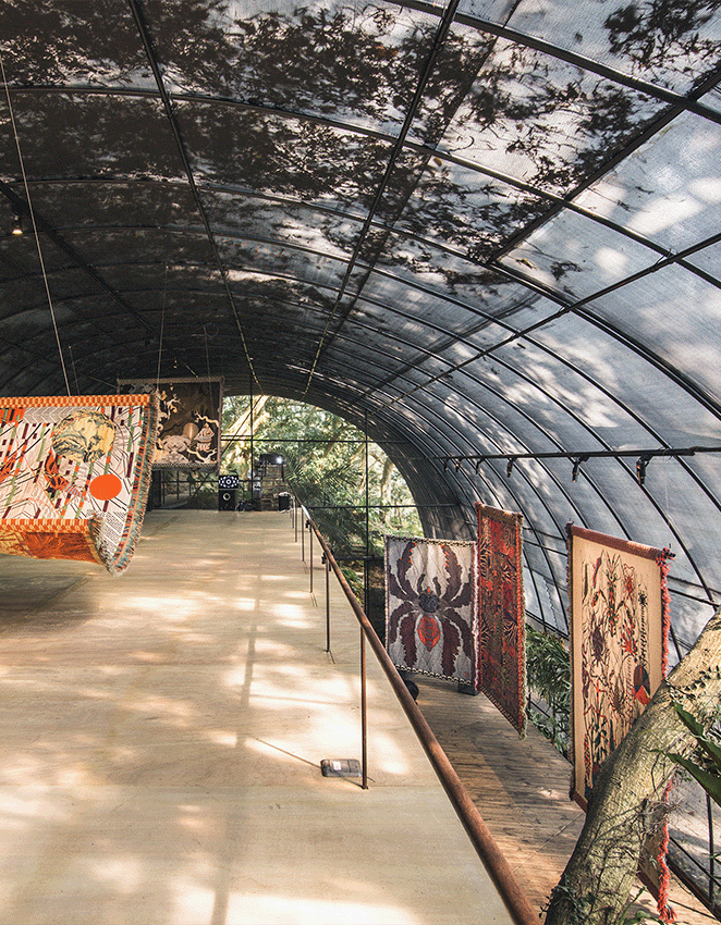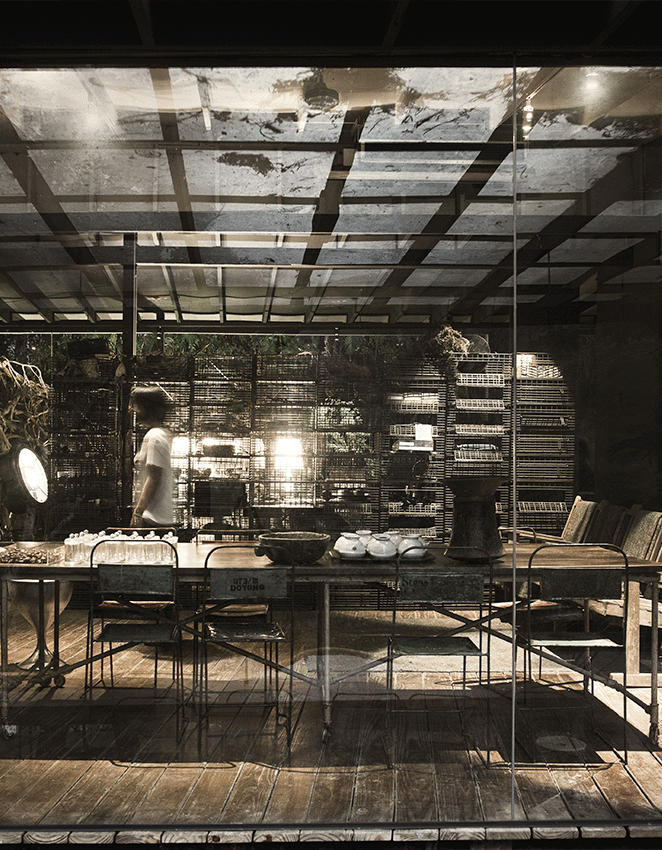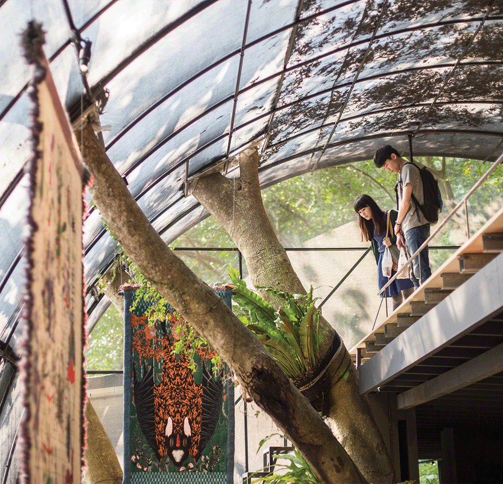 Atölye yapısı, doğal çevreyle iç içe bir strüktür. Opak, yarı şeffaf ve şeffaf yüzeyleriyle, gün ışığını çeşitli kırılmalarla yarı açık, açık ve kapalı mekanlara davet ediyor. Işık oyunlarıyla beslenen bu farklı mekanlar kimi zaman bahçeye açılıyor, üretim mekanları sunuyor ve hissetmeyi, duymayı, dinlenmeyi deneyimlenebilir kılıyor. Atölyenin ana strüktürüne sekiz metre yüksekliğinde ve 20 metre uzunluğunda bir kabuk eklemleniyor. Kabuğun tasarımında, Tayvan’ın kültürel tarım peyzajlarında yer alan geleneksel olarak ağ örgüsü şeklindeki ince örtülerle kurulan strüktürlerden ilham alınmış. Atölyeye eklenen bu kabuk, iç ve dış mekan arasında yeni bir alan oluşturarak yapının havalandırılmasına, yarı gölgelikli alanların oluşmasına ve rüzgar kontrolüne olanak tanıyor. Doğal bitki örtüsünü oluşturan ağaçlar ise yer yer bu ara mekandan gökyüzüne doğru uzanarak mekansal iyileşmenin tarifini veriyor.