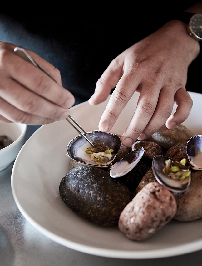 Wolfgat’ın kıyıda konumlanmasının bir sonucu olarak sepetlerdeki deniz kabukları, bulunan küçük hayvanların kafataslarından oluşan bir koleksiyon ve Şef Kobus’un botanik infüzyonları restoranı benzersiz kılan noktalardan birkaçı. Havanın açık olduğu günlerde konuklar okyanusun muhteşem manzarasına sahip verandada yemeklerinin keyfini çıkarırken; geceleri ve soğuk günlerde, şef ve ekibi masaları içeriye taşıyor, şöminede ateş yakarak misafirlerine açık mutfak deneyimi yaşatıyorlar. Şef Kobus’un mutfağından çıkan lezzetler tadılırken restoran isminin hikayesine dönelim. Yamaçtan birkaç adım aşağıda, binlerce yıl önce yerel halklar tarafından kullanıldığına inanılan ve restorana adını veren Wolfgat mağarası yer alıyor. Wolfgat; “kurt deliği” veya “mağara” anlamına geliyor; işte Wolfgat’ın ilham noktası, bu arkeolojik ve jeolojik öneme sahip araziden. Mağaranın ilk arkeolojik araştırması son 2000 yıldan günümüze sayısız seramik kalıntılarını ve koyun kemiklerini ortaya çıkardı. Yerel efsanelere göre altında birçok yeraltı geçidi olduğu söyleniyor. Ödüllü mutfaklara sahip restoranların aksine, buradaki atmosfer sakin ve telaşsız bir hızda. Mevsimlerle ve doğal işleyişiyle tamamen uyumlu bir dünya yaratılmış. Menüde et (yerel geyik eti ve kuzu eti) doğru mevsimi olan sonbaharda ve kışın servis edilirken, yaz aylarında odak noktası sürdürülebilir kaynaklı deniz ürünlerine kayıyor.