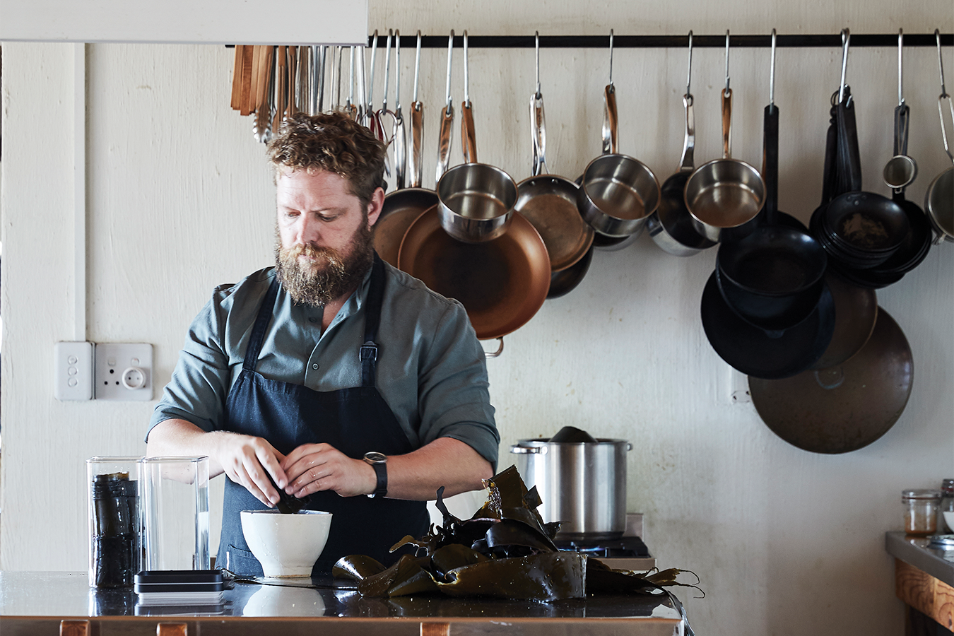 Tarih boyunca sayısız denizcilik serüvenine şahitlik etmiş bu bölgede, daha sessiz daha yaratıcı bir yaşam kurmak için şehirden ayrılan ünlü Şef Kobus van der Merwe, Atlantik Okyanusu’nun saniyeler sonra sileceği ayak izlerini kumsala bırakarak ilerliyor. Benzersiz restoranı Wolfgat için malzeme avına çıkan Şef, pazara ya da dükkanlara değil sonsuz maviliğin kıyılarına yöneliyor. Hava açık olsa da ısırıyor ve güneşin ilk ışıkları, suyun üstünden hareketli dansıyla yüzüne yansımaya başladı. Şef ayakkabılarını kumsala bırakıp, sırtına bir balık sepeti bağlayarak kayalıklara doğru ilerliyor. Zaman kaybetmeden aradığını bulup sepetine attı bile! Yerel dilde “kaya battaniyesi” anlamına gelen bir demet deniz yosunu. Sepetindeki yosunlar, küçük restoranını bir hafta idare etmeye yeter. Şef toplayıcılığın temel kuralına hakim; o da ihtiyacından fazlasını almamak! Toplanan deniz yosunu yalnızca durulanarak okyanusun tazeliğini hatırlatan tadıyla o gün çeşitli garnitürlere hayat verecek.